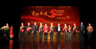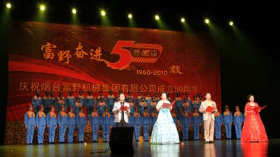 2010年11月7日上午,煙臺(tái)富野機(jī)械集團(tuán)有限公司成立五十周年盛典暨大型文藝演出在煙臺(tái)大劇院隆重舉行。中國(guó)對(duì)外經(jīng)貿(mào)企業(yè)協(xié)會(huì)副會(huì)長(zhǎng)、山東省對(duì)外經(jīng)貿(mào)協(xié)會(huì)煙臺(tái)分會(huì)會(huì)長(zhǎng)許志強(qiáng),煙臺(tái)市經(jīng)濟(jì)和信息化委員會(huì)主任孫濤,煙臺(tái)市工商業(yè)聯(lián)合會(huì)主席夏曉峰,煙臺(tái)市民營(yíng)企業(yè)協(xié)會(huì)會(huì)長(zhǎng)欒魯閩,煙臺(tái)市機(jī)電國(guó)有控股有限公司董事長(zhǎng)趙衛(wèi)紅,煙臺(tái)市總工會(huì)副主席張曉東,原煙臺(tái)市機(jī)械局的領(lǐng)導(dǎo)、機(jī)械行業(yè)企業(yè)及其他兄弟企事業(yè)單位的代表、集團(tuán)老領(lǐng)導(dǎo)以及集團(tuán)所屬各企業(yè)1100余名員工共同參加了慶典活動(dòng)。